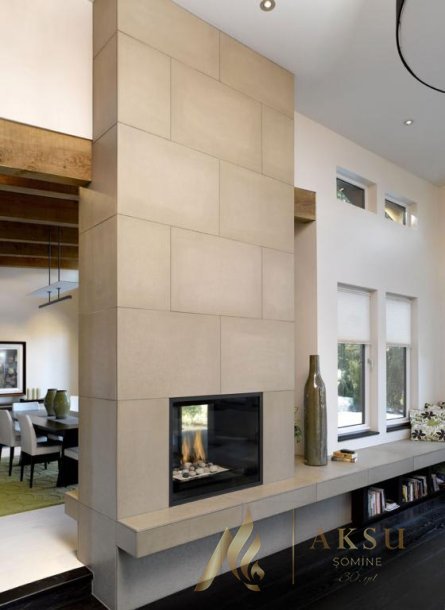 Çift cepheli camlı şömine tasarımıyla iki mekânda aynı anda kullanım