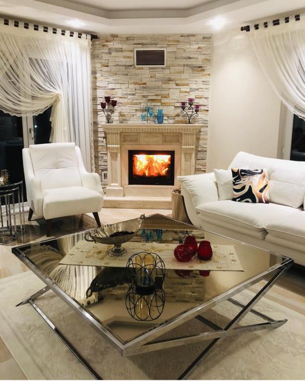 Isı odası kısmı patlatma taş kaplama ile tasarlanmış, dış cephede ise sade ama zarif bej mermer yüzey kullanılmıştır. Hafif işlemeli dekor detaylarıyla klasik estetiği modern dokunuşlarla harmanlayan bu model, yaşam alanınıza sıcaklık ve prestij kazandırır.