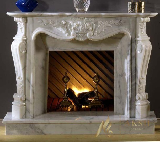 Şöminenin ön yüzeyindeki işlemeli detaylar ve doğal taşın dokusu, geleneksel şömine ruhunu çağdaş teknikle buluşturur.