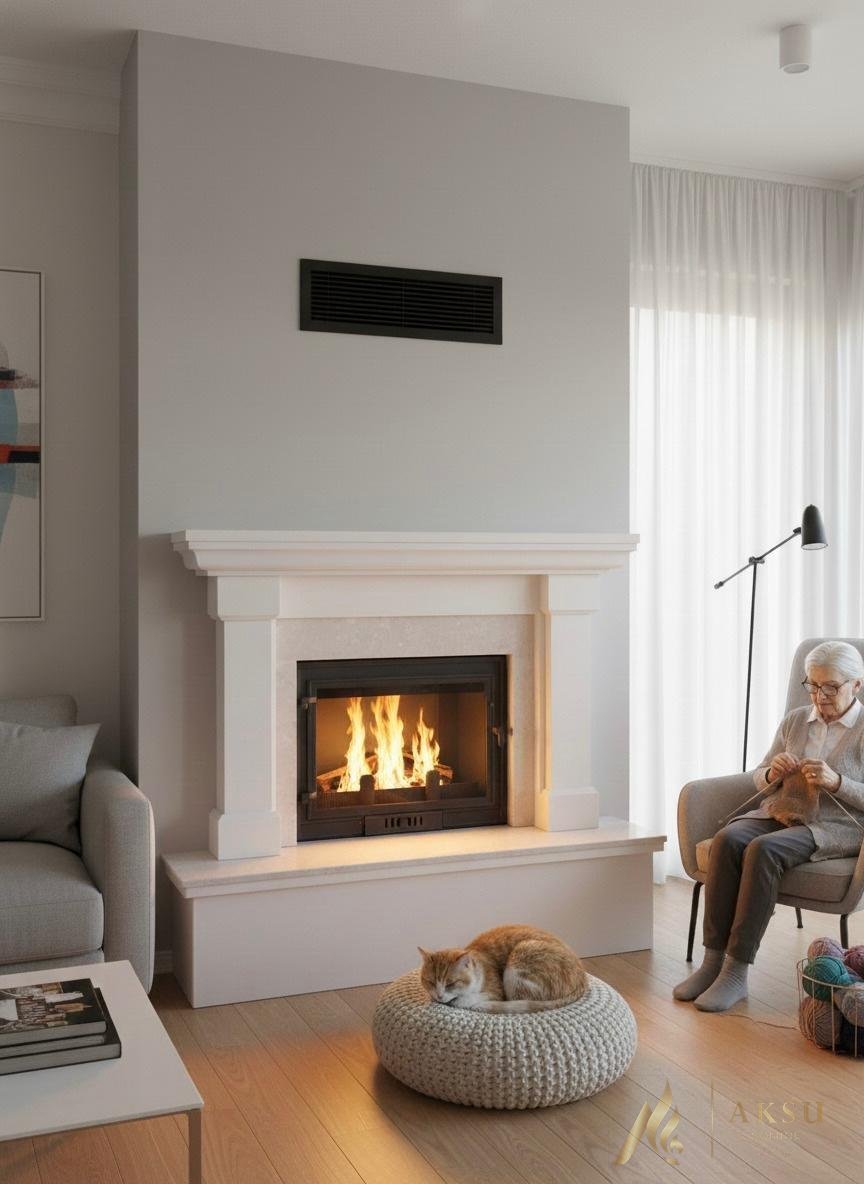 Aksu Şömine kalitesiyle imal edilen bu model, kişiye özel ölçü ve tasarım seçenekleriyle, Türkiye’nin her yerine montaj hizmetiyle teslim edilmektedir.