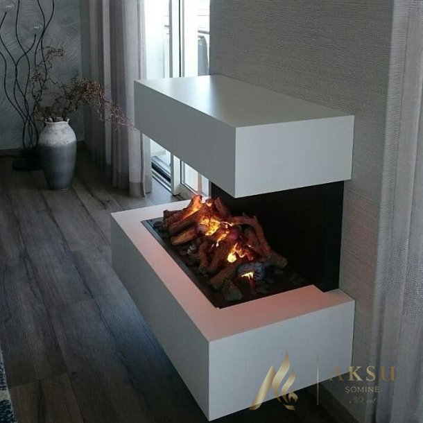 Aksu Şömine birbirinden farklı seçenekleri ile mekanlarınız hem şık,hem sıcak...Üç boyutlu şömine ve ahşap giydirme kullanılmıştır.