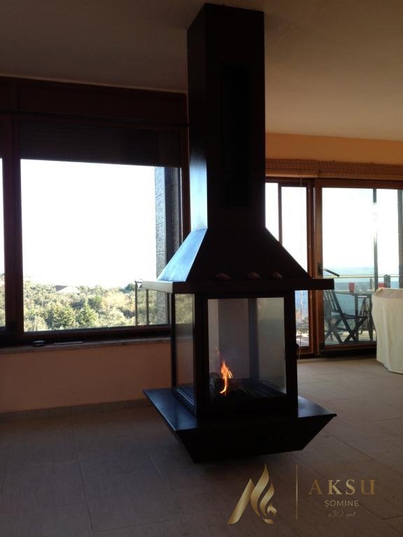 Tasarım serisi pramit şömine ile mekanlarınıza farklılık katın. Ön ve arka yana açılır kapak Çift cidar çelik gövde 250 Q / 300 Q çap Dışardan kontrol baca klapesi