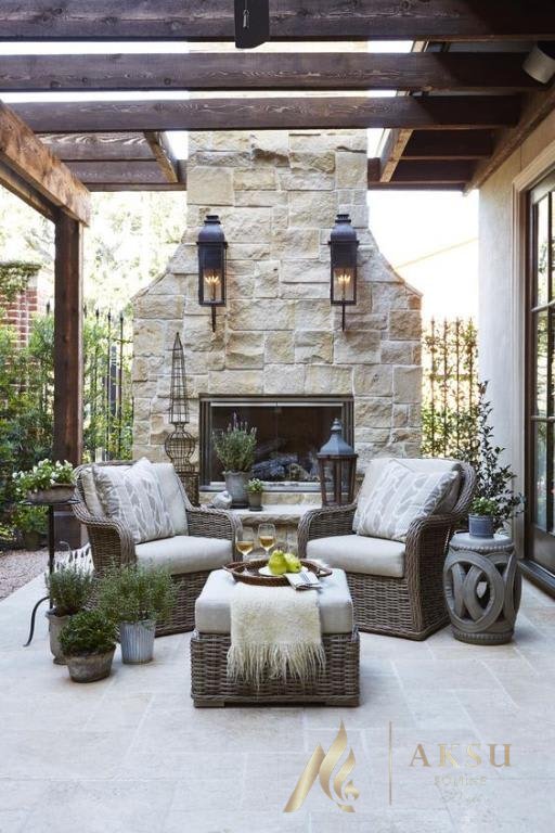 Komple taş kaplama bahçe şömine si ve barbeküsü / farklı tasarımlar , şık mekanlar, konforlu alanlar için Aksu Şömine