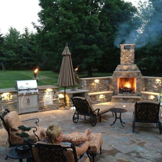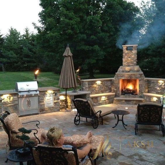Komple taş kaplama bahçe şömine si ve barbeküsü / farklı tasarımlar , şık mekanlar, konforlu alanlar için Aksu Şömine