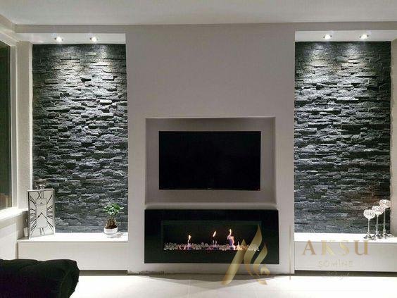 Duvara gömme model bio şömine/ duvar taş kaplama modelin birleşimi