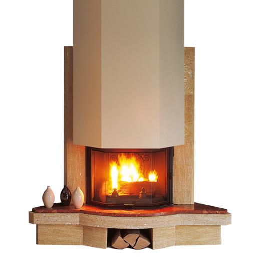 Traverten taşı kaplama ve granit alt tabla ile prizmatik şömine tasarımı