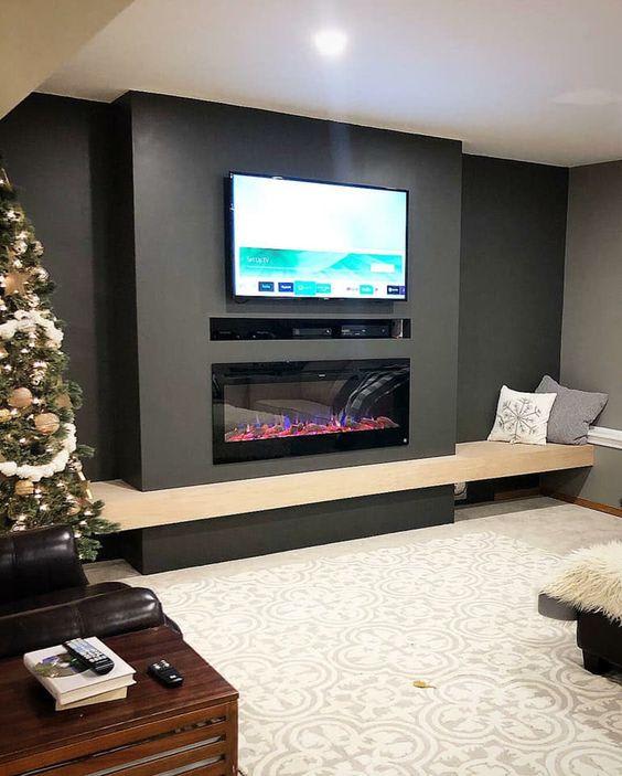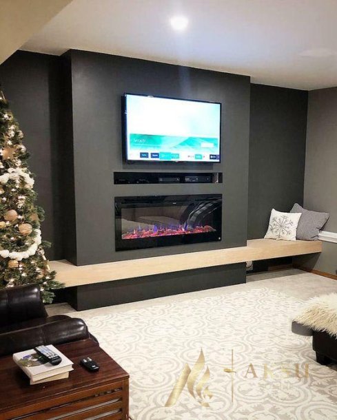 Duvara gömme model şömine, alt sedir uzatması ve plazma şömine montajı- dış kısmı sıva ve boyadır.