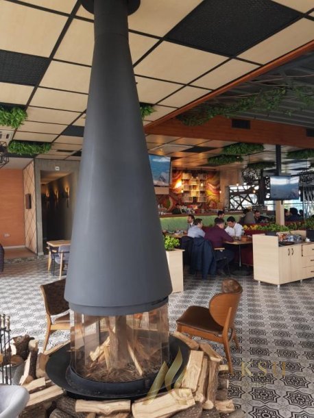 Yuvarlak camlı model orta şömine- çelik gövde statik boyalıdır, Monna Cafe Restaurant a yaptığımız şömine montajımızdan birkaç kare