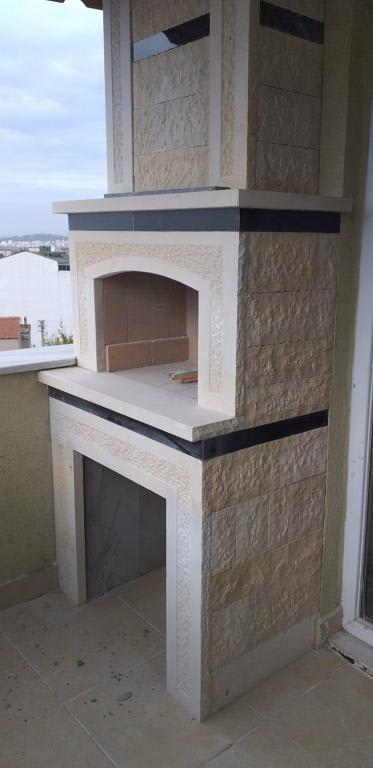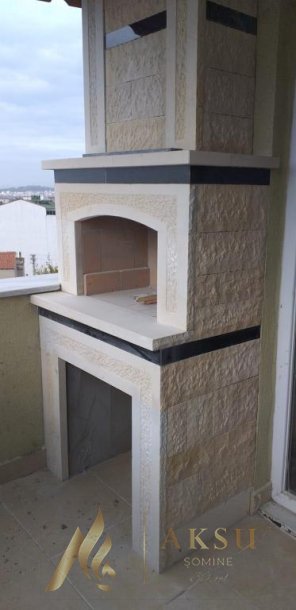 Kandıra taşı elde kırma sistemli standart barbekü, bordür olarak siyah granit yerleştirilmiştir, barbekü ye istediğiniz uzunlukta tezgah ekleyebiliriz.