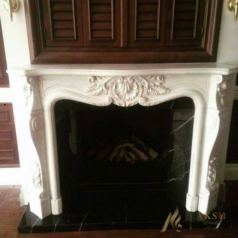 İşlemeli model beyaz şömine