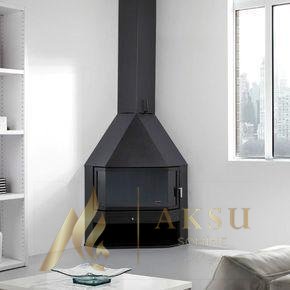 Köşeye uyarlanmış metal asma şömine modeli istediğniziz ebatta üretim yapılır. Aksu Şömine ile mekanlarınız hem şık hem sıcak.