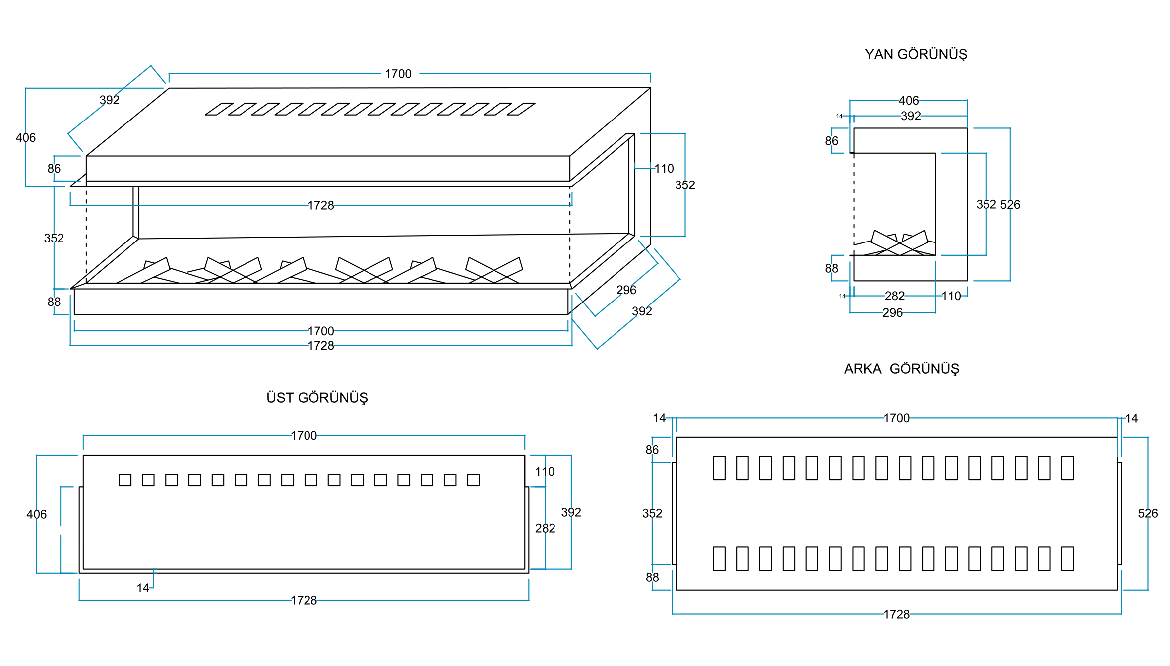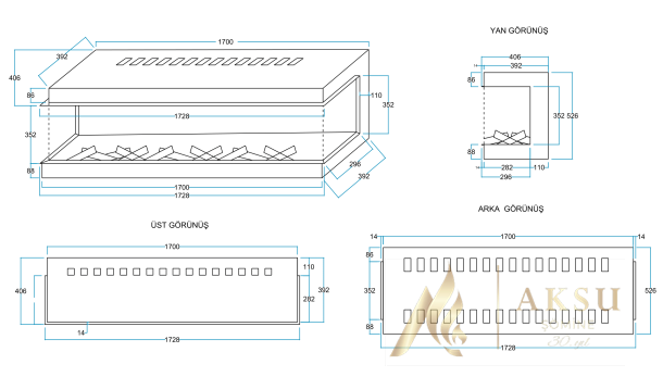 AKS COZA RZN 170 CM ELEKTRİKLİ ŞÖMİNE