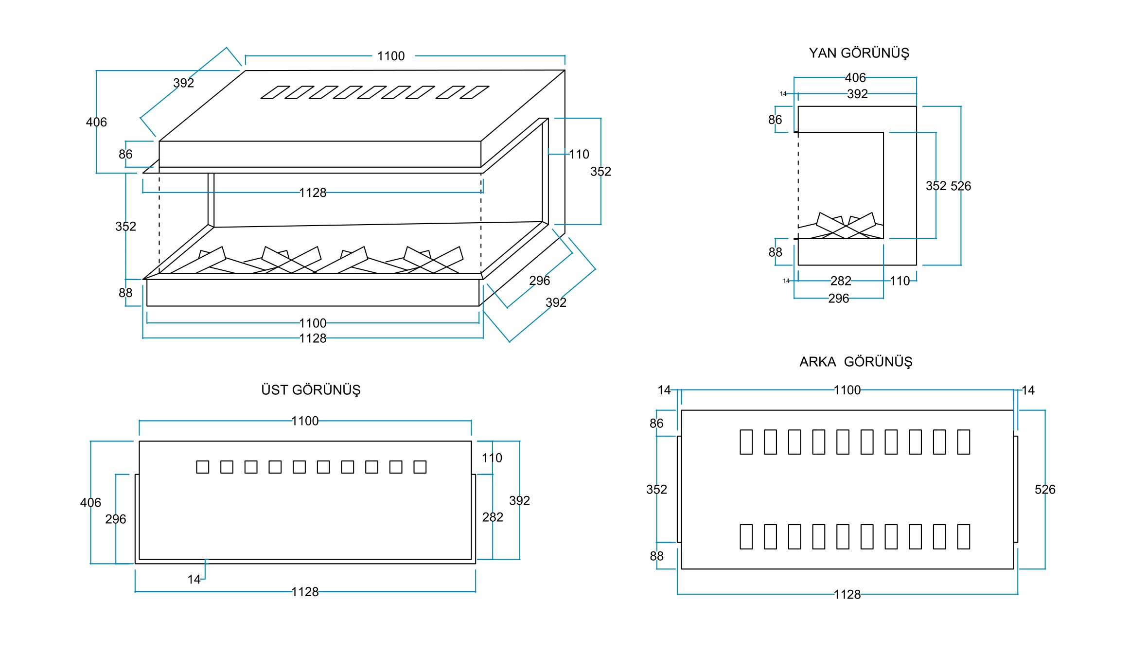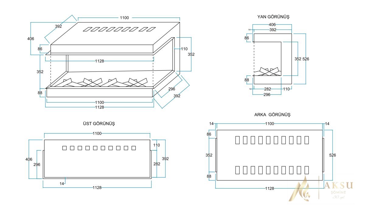 AKS COZA RZN 90 CM ELEKTRİKLİ ŞÖMİNE