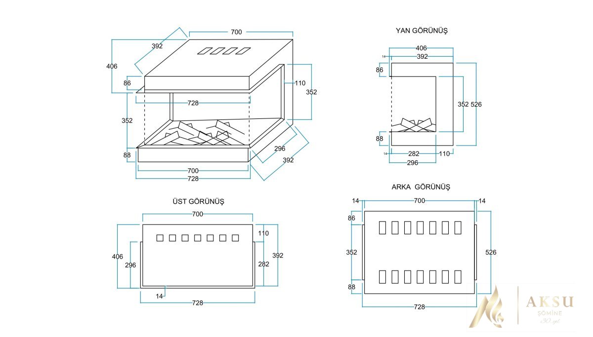 AKS COZA RZN 70 CM ELEKTRİKLİ ŞÖMİNE