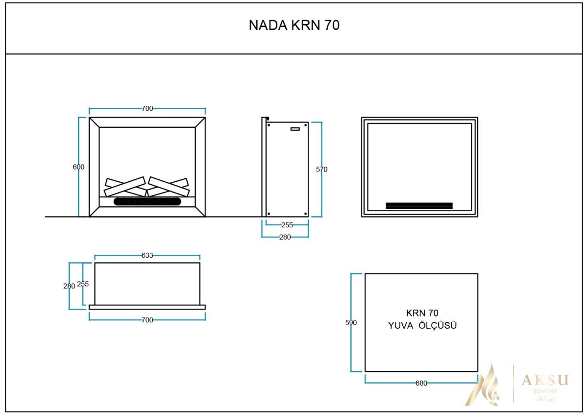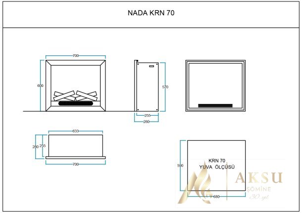 AKS NADA KRN 70 CM ELEKTRİKLİ ŞÖMİNE